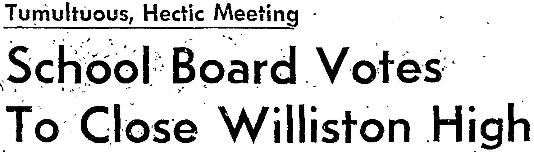 Part of Headline in Wilmington Morning Star from June 27, 1968 announcing the Closure of Williston Senior High School
