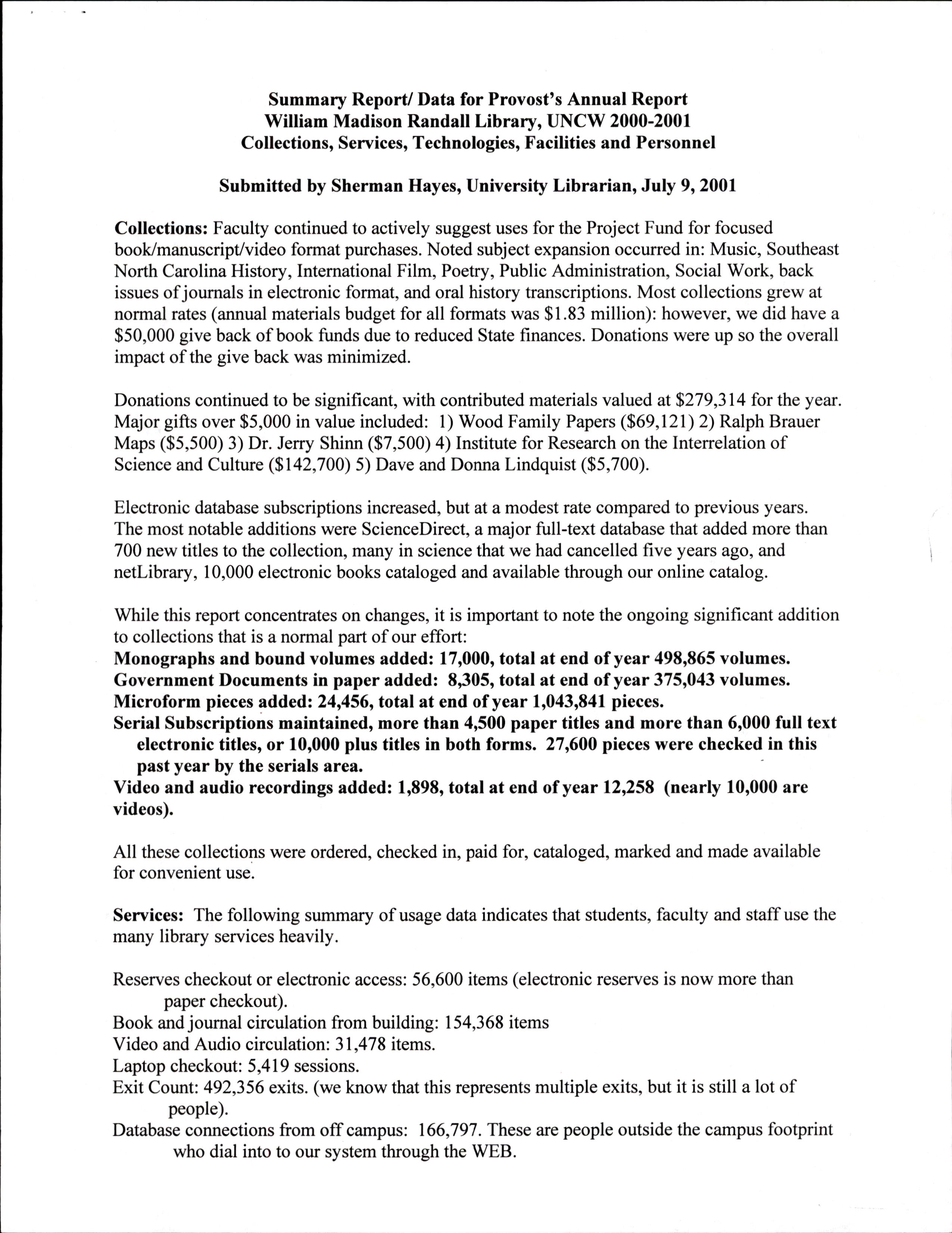 - Yearly report on library operations