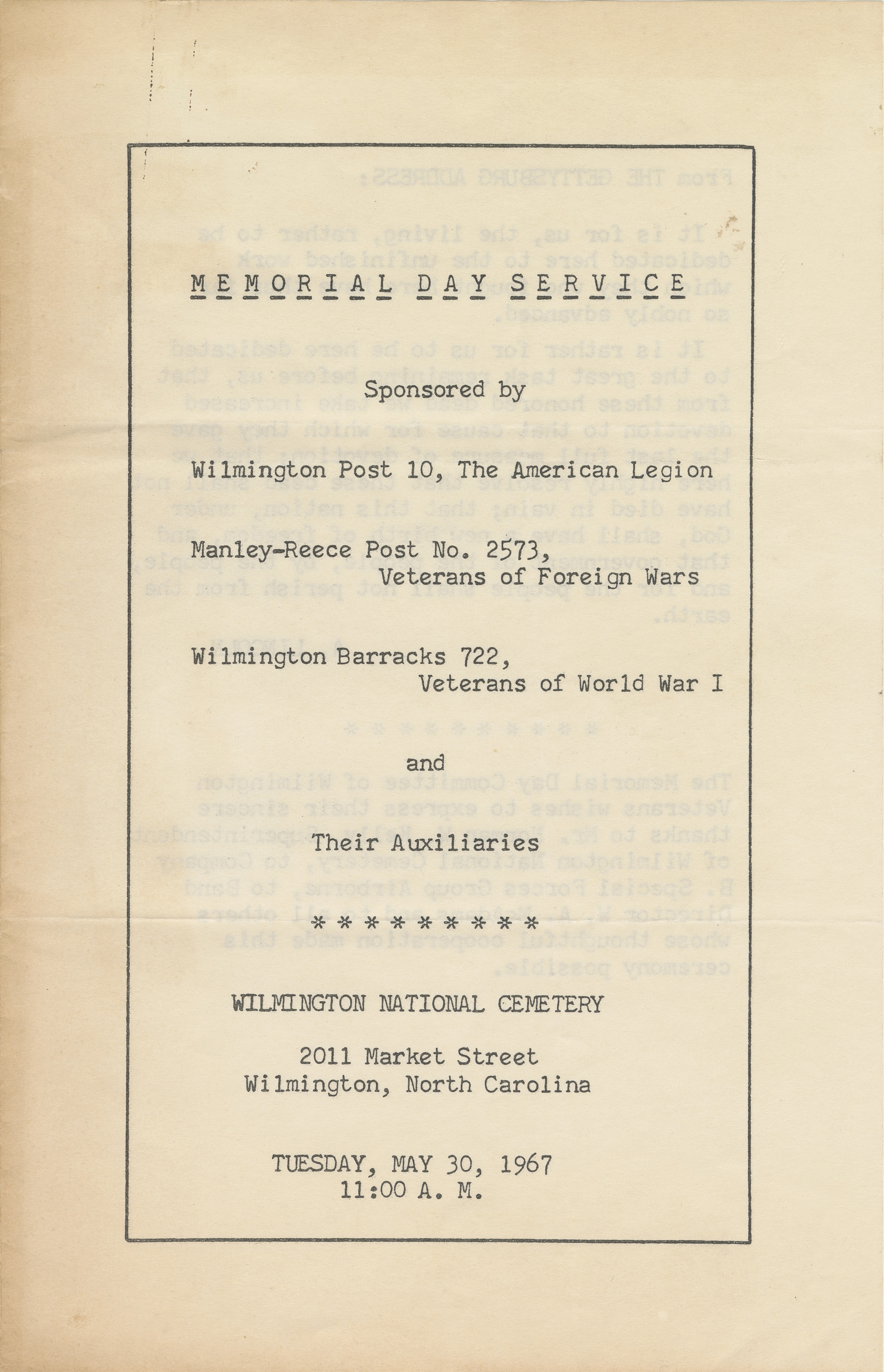 - Memorial Day Service at Wilmington National Cemetery, 1967 May 30